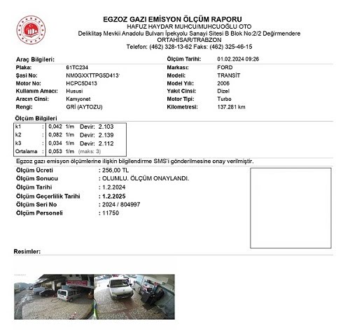 Egzoz Gazı Emisyon Ölçümü Raporu “Olumlu Ölçüm Onaylandı”