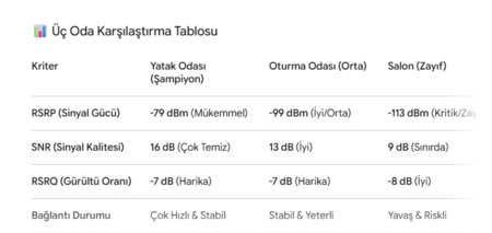 RSRQ -7 dB 👉 Sinyalin kalitesi (parazit / yoğunluk durumu)➡️ Ne kadar 0’a yakınsa o kadar iyi