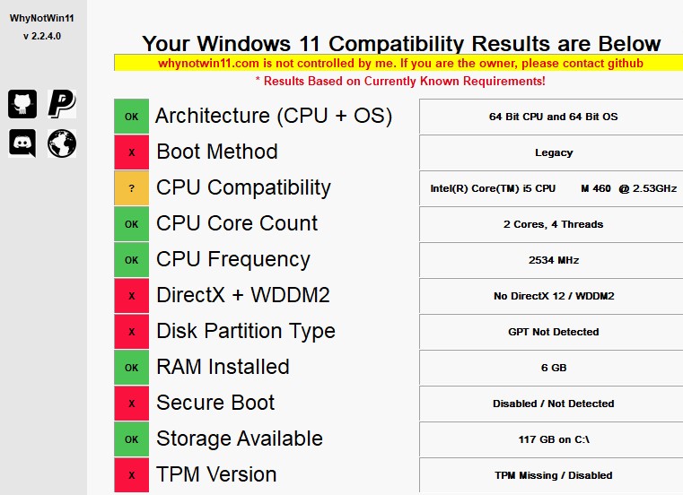 Bilgisayarınıza Windows 11 kurulamıyor uyarısını alıyorsanız bilgisayar sisteminizin eksik yönlerini kolay şekilde öğrenmek için buradan WhyNotWin11 aracını/programını indirin çift tıklayın bilgisayarınızın eksik yönlerini bilgisayarınızın uyumluluk sonuçlarını göreceksiniz.