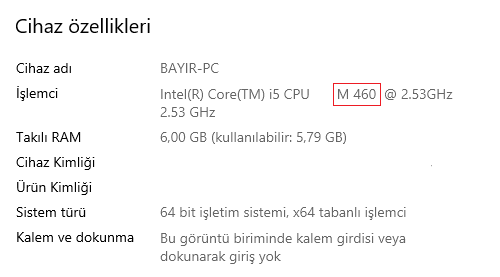 Görüldüğü gibi benim bilgisarımın model numarası 3 haneli yani 1. nesil oluyor.