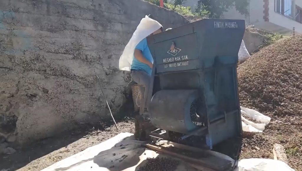Topladığımız fındıklar harmanda kurudu patoza vurmak zuruflarından ayırmak gerekiyordu ancak köye patoz girmedi.