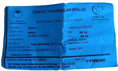 Bu yıl Tarım Orman Bakanlığına bağlı Türkiye Tohumcular Birliğinin (TURKTOB) Sertifikalı Tohumluk patatesi Melody çeşidi 1. Kademe türünü diktik.