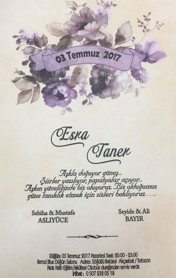 Related posts: Şeyda ÇÖMLEKÇİ & Tolga BAYIR Düğünü Canan ÇAĞLAR ile Onur ASLAN nişanlandılar Akçaabat Karpınar köyünde Davul-Zurna Düğün Züleyha İLGEN, Miraç ÇEVİK Düğünü Yazı gezinmesi Ali TOSUN & Gözde YAŞAR Düğünü Esra ÖTÜNÇEL ile Levent BAYIR nişanlandı